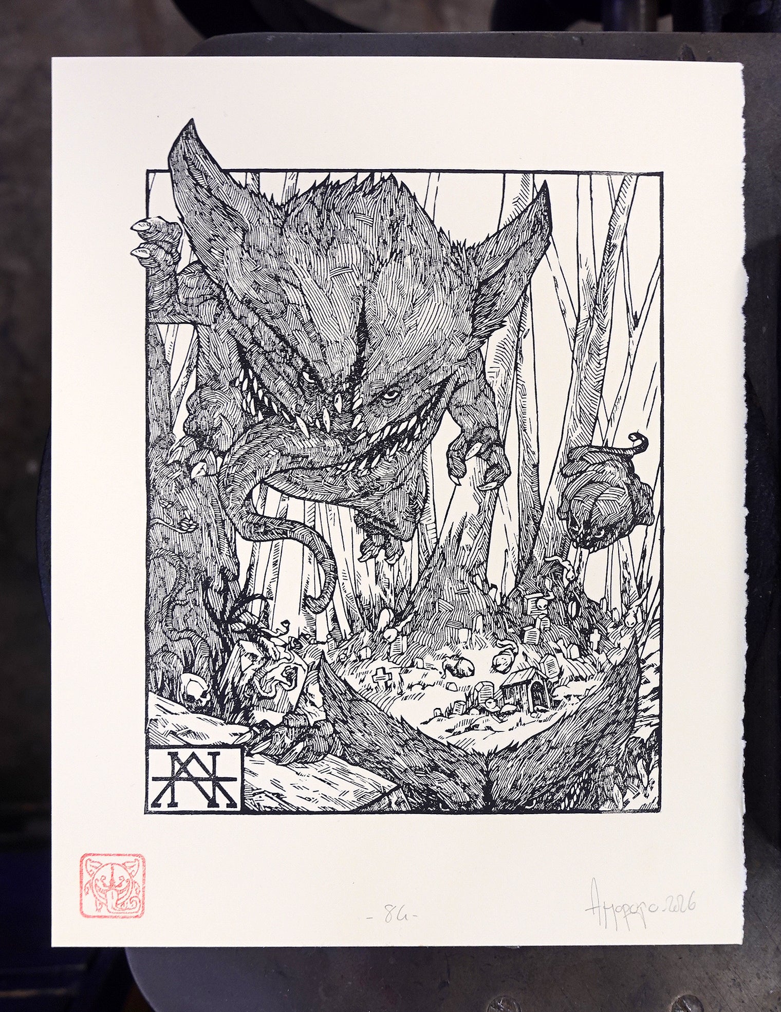 GENGAR - Handmade woodblock print - 28x22cm